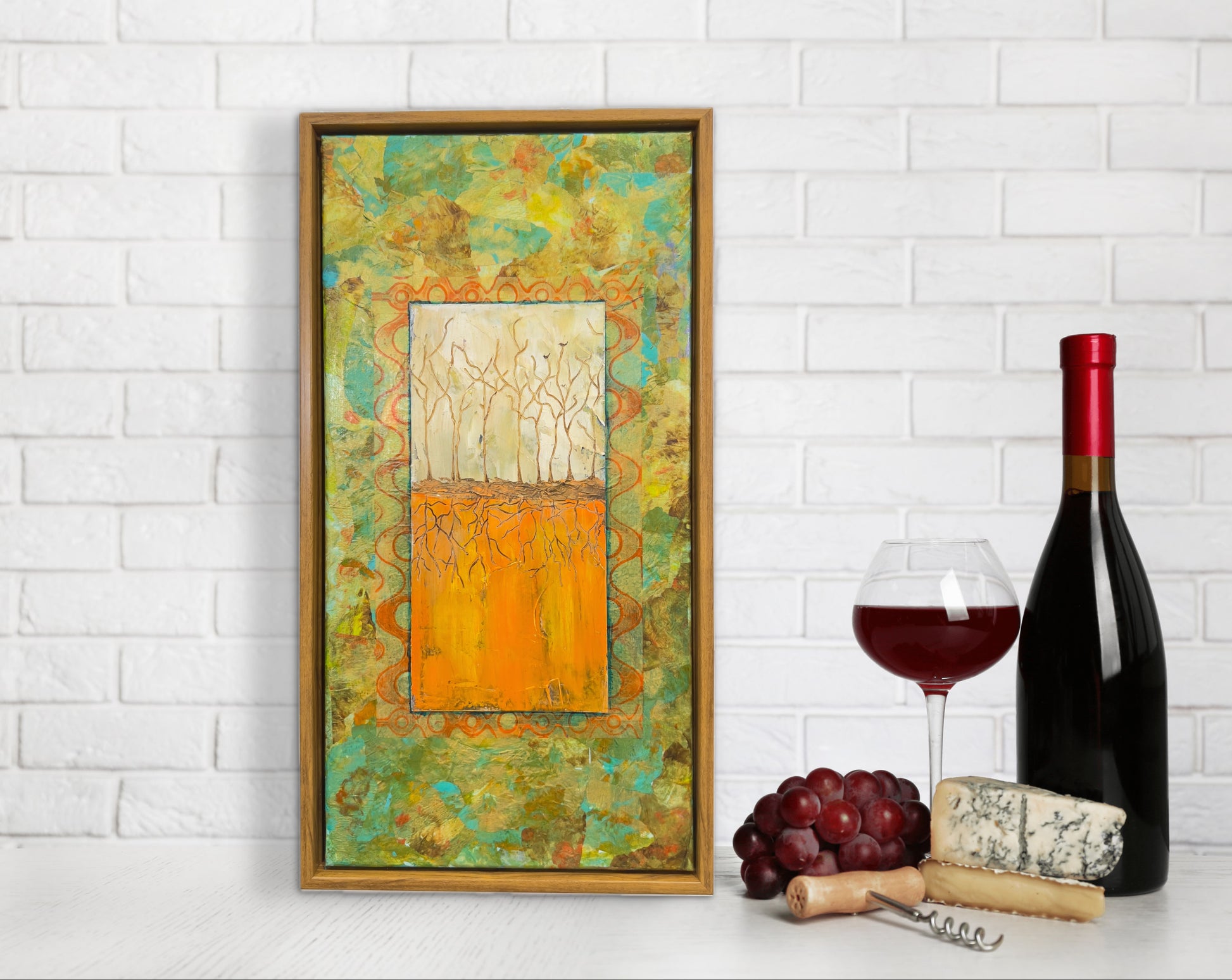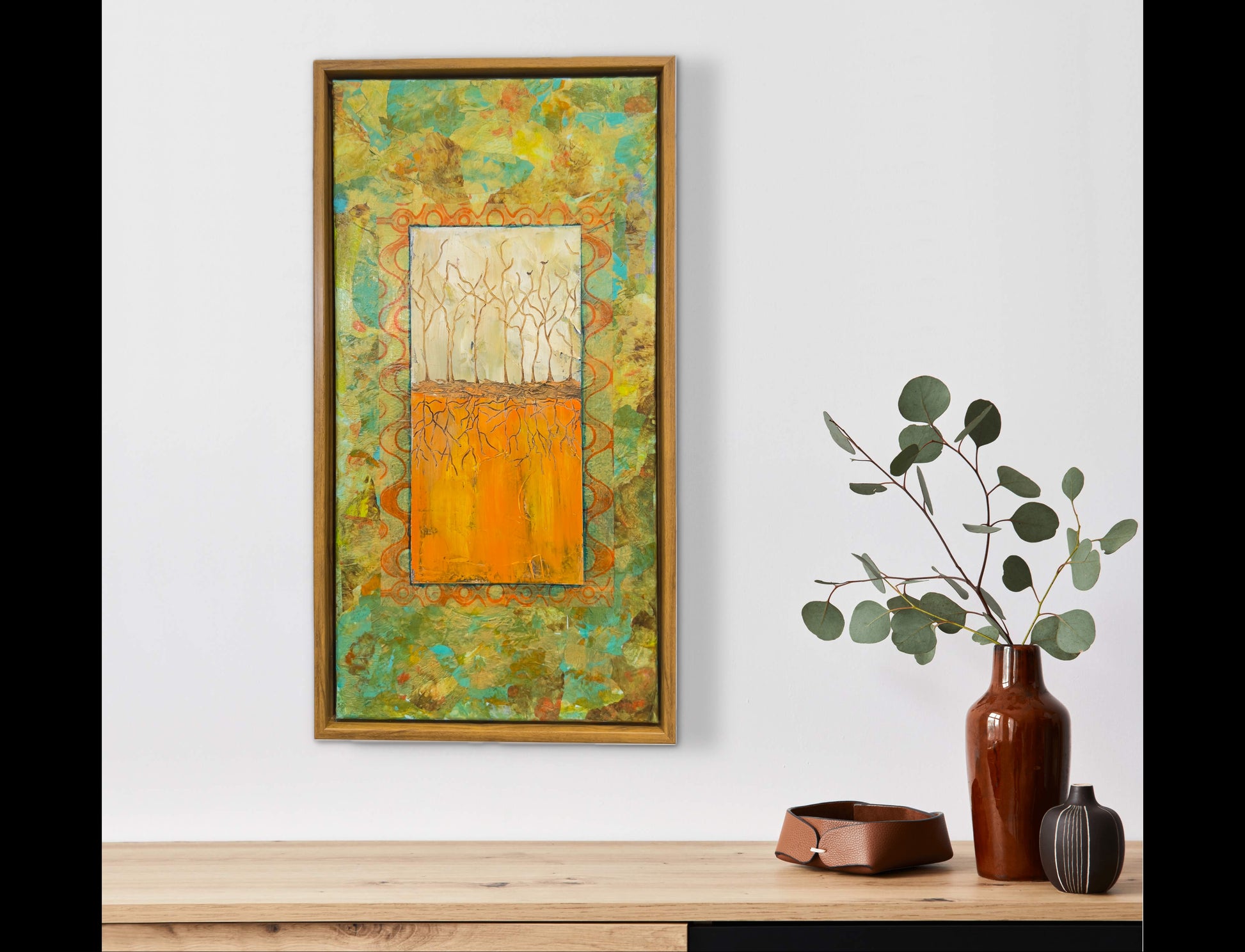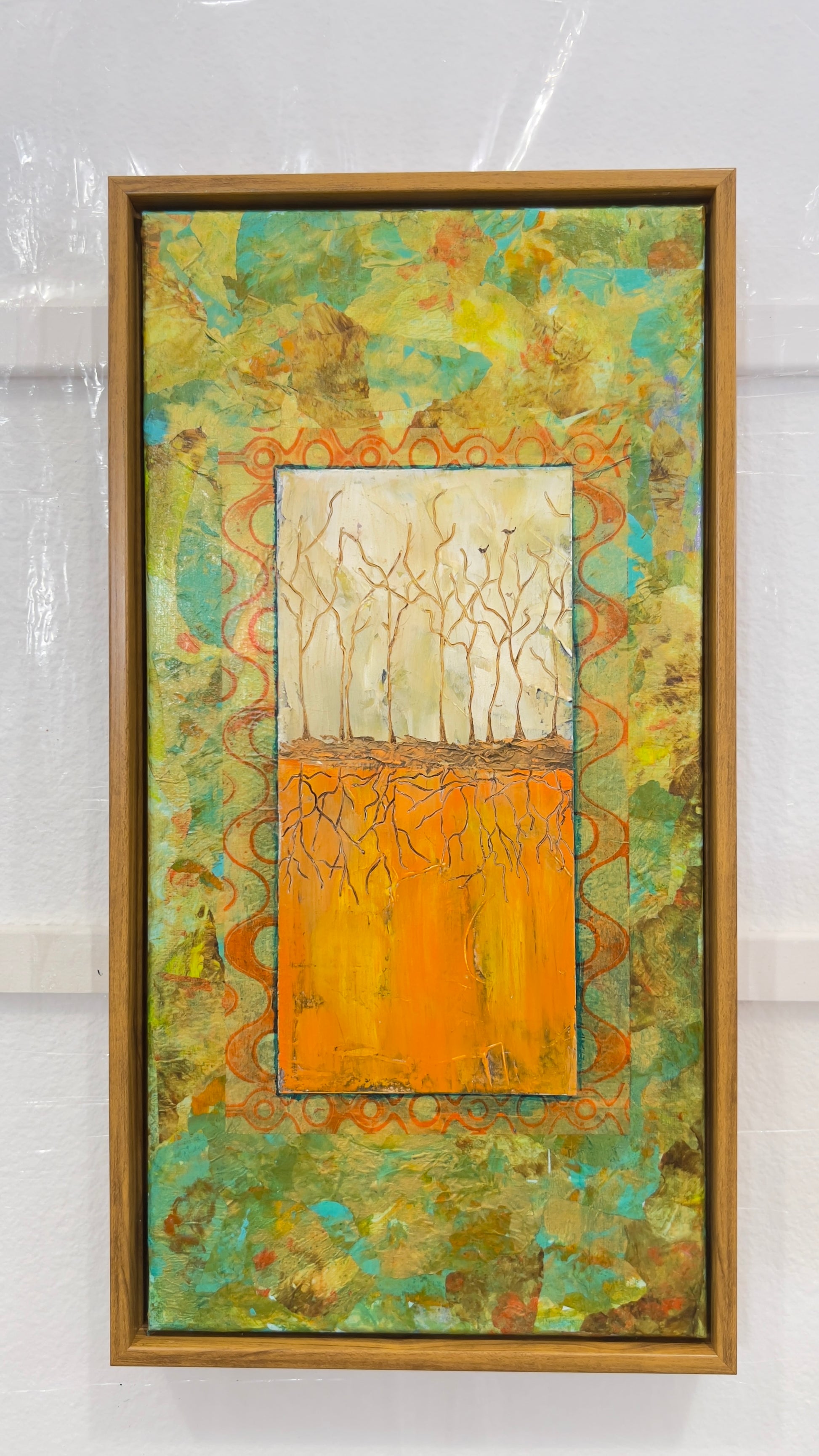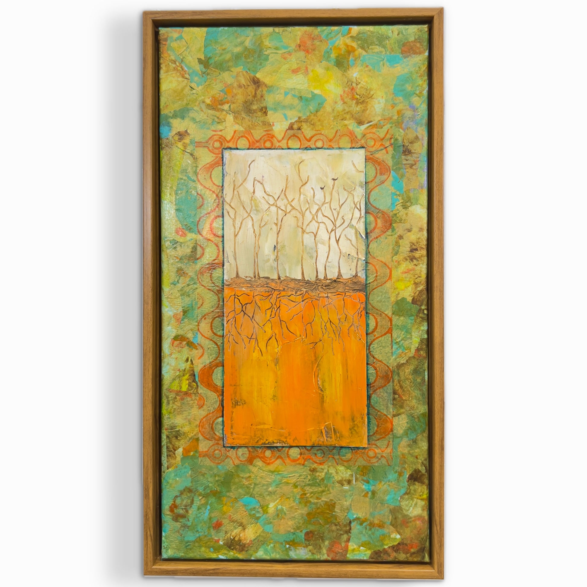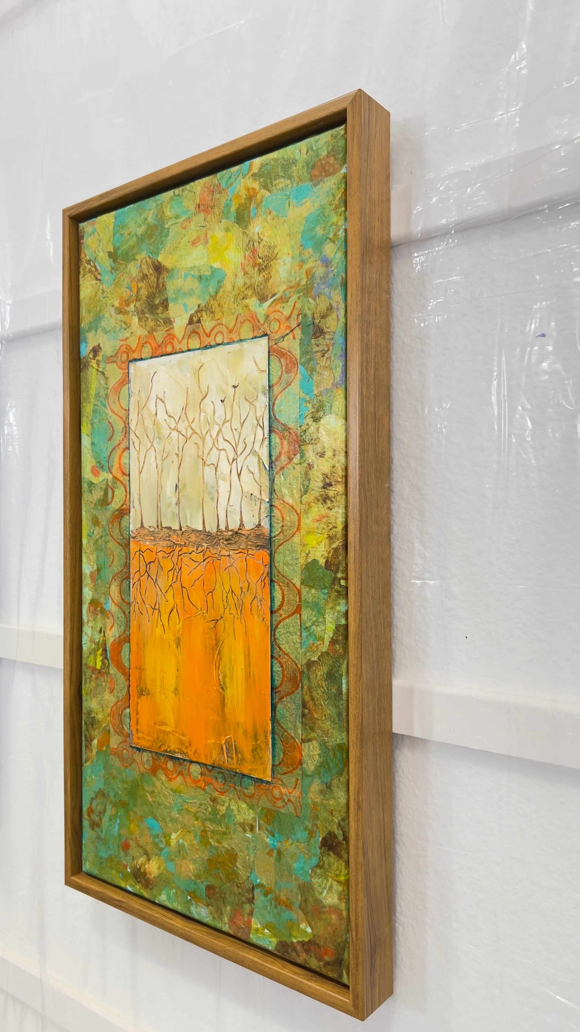 Center-Oil Painting, Outside-Acrylic painted papers, on Canvas and Framed 21"X11"X 1-3/4"