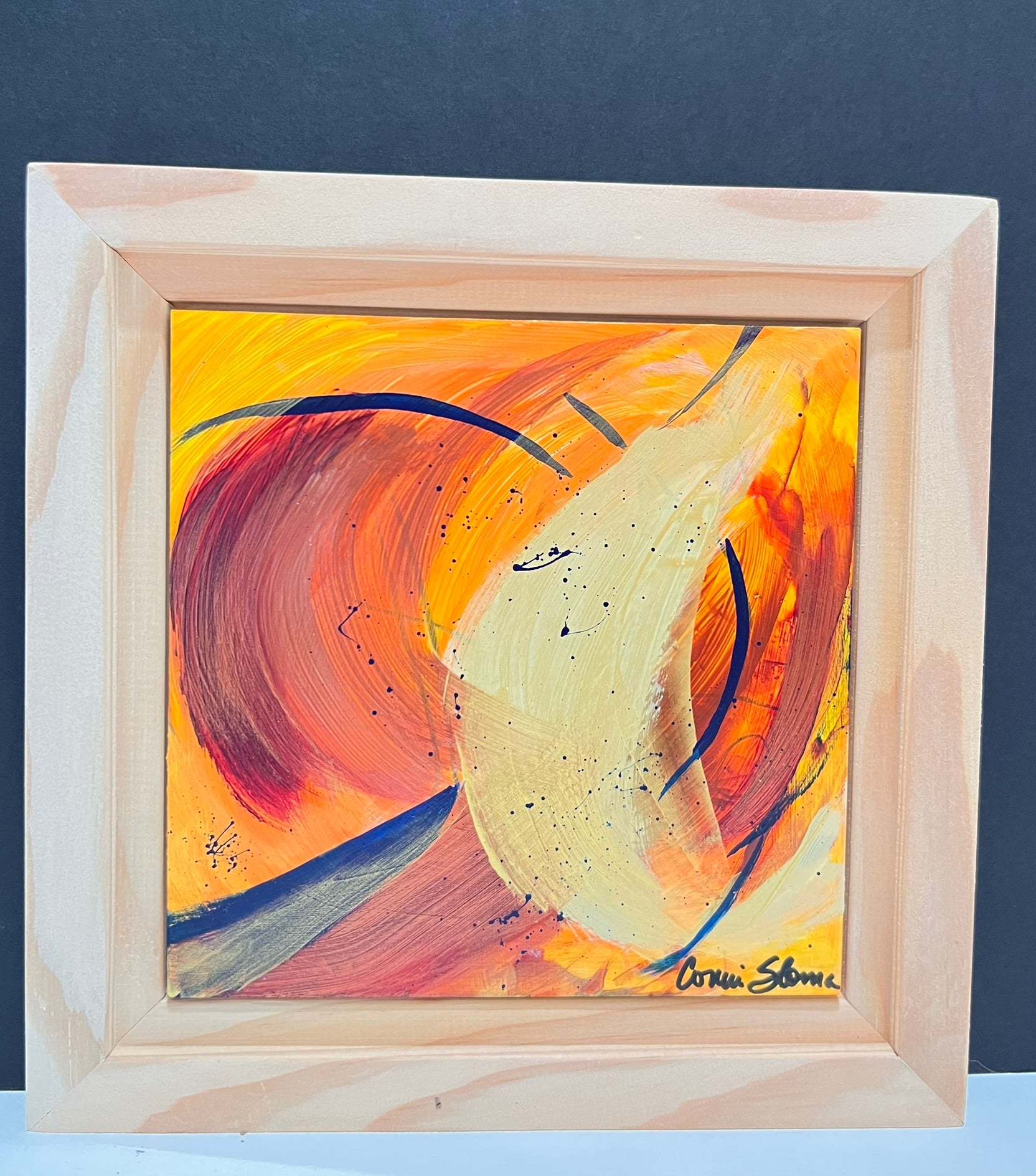 8.5"x8.5"x.5 Framed, acrylic on board.