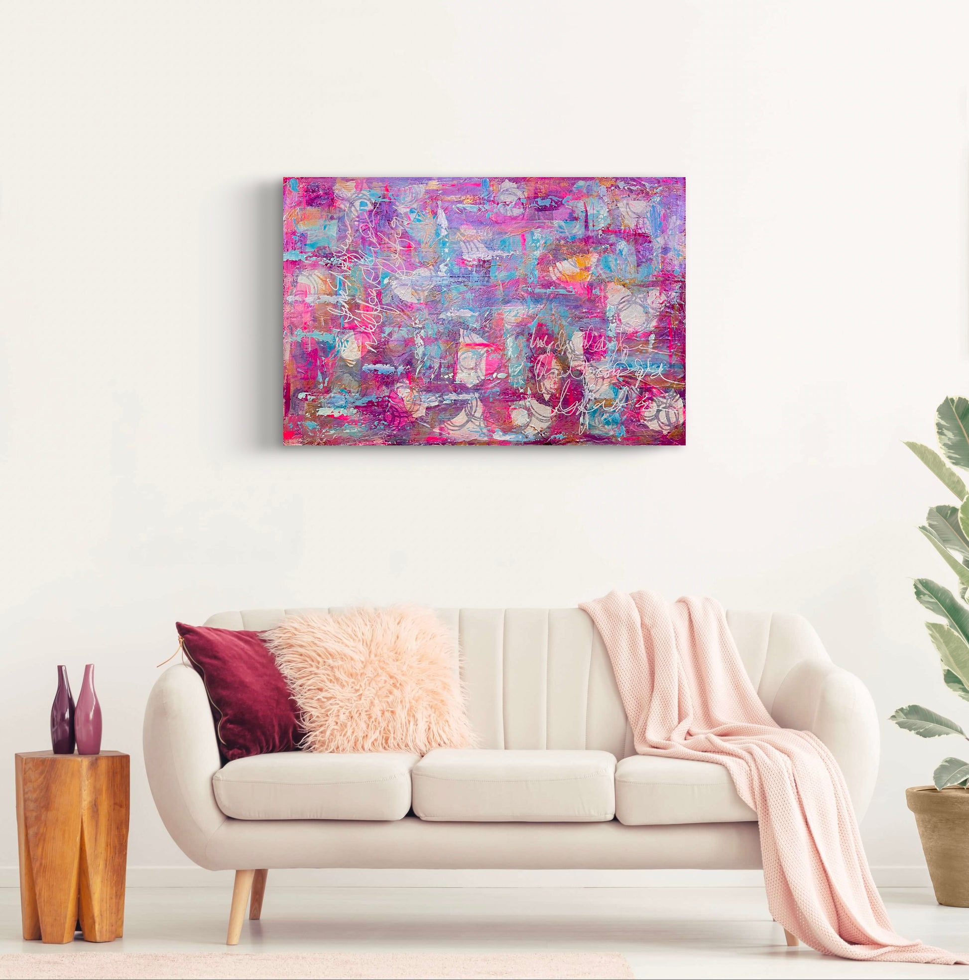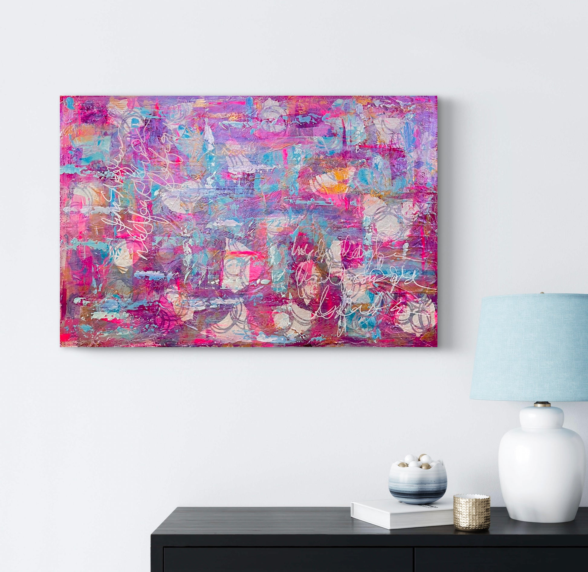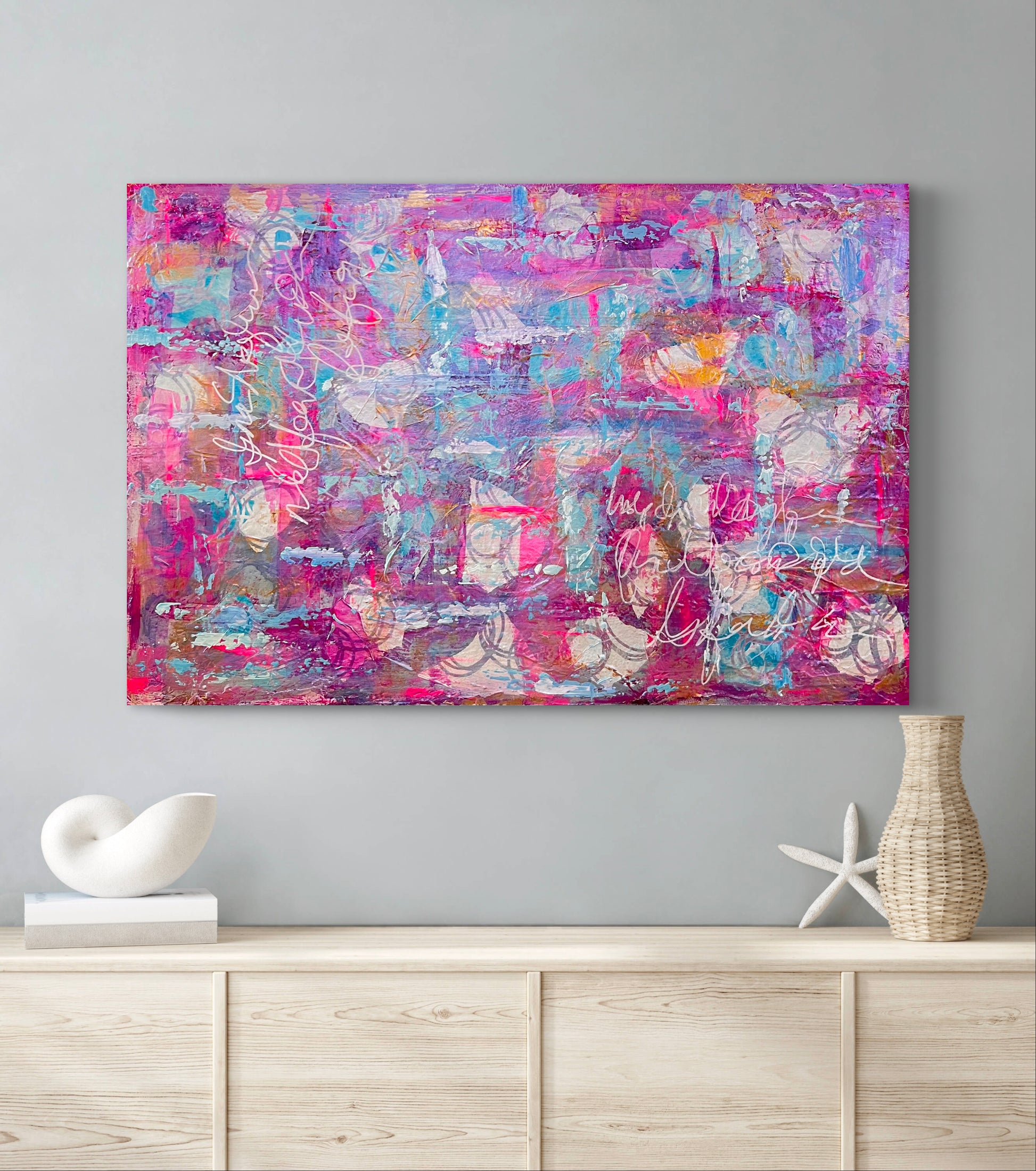 This artwork features a vibrant interplay of circles and lines, symbolizing the subtle bonds that link us despite physical distance. Its sophisticated design invites reflection on connection and separation, with secret writings, making it a thoughtful addition to any space seeking depth and meaning.