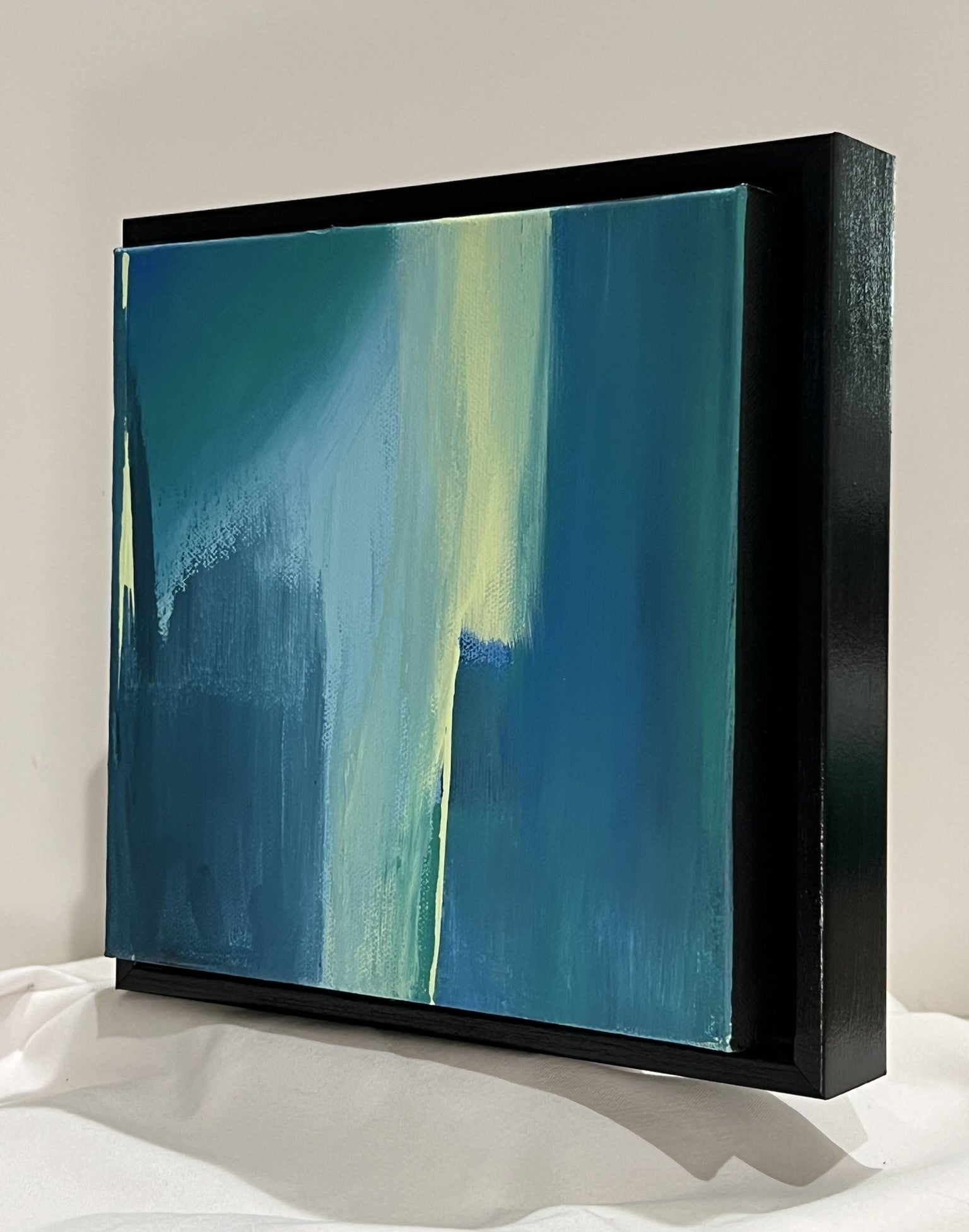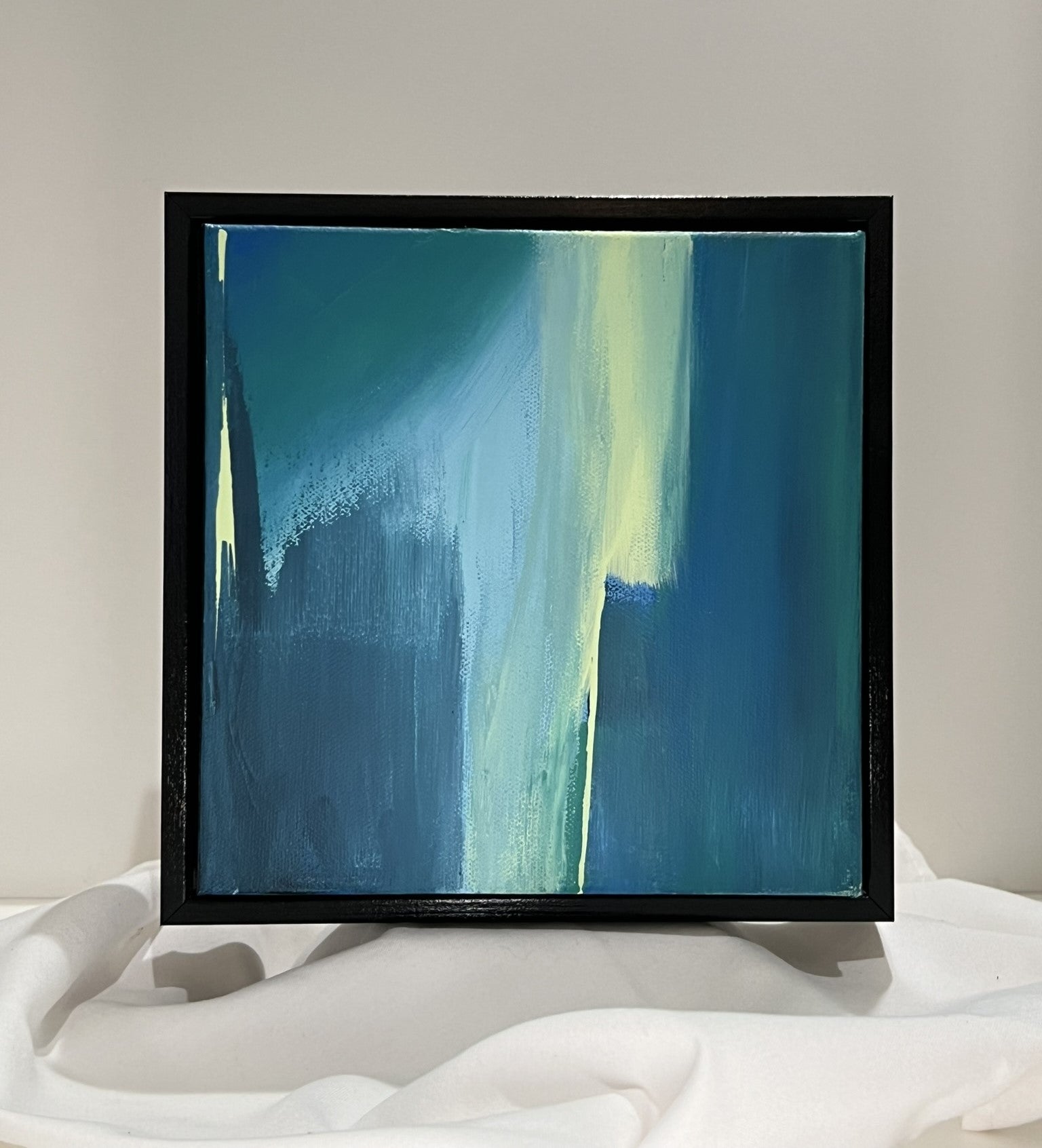9"x9" Acrylic on gallery canvas, framed included and ready to hang.